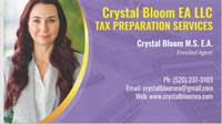 At Crystal Bloom EA LLC, I specialize in helping individuals and small businesses with their tax needs. Whether your a freelancer, a small business owner, or an individual navigating complex tax situations. I'm here to assist you every step of the way. With meticulous attention to detail and a deep understanding of tax laws. I ensure that every return is accurately prepared for compliance. My goal is to simplify the tax process for you, taking the stress out of tax season and helping you meet all necessary filing requirements. Trust me to handle your tax preparation needs with professionalism and expertise so you can focus on what matters.